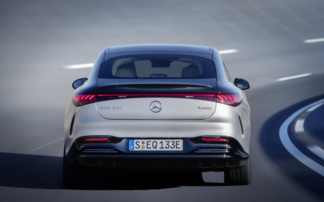 Das EQS-Heck ist rund und coupéartige gestylt. Hinter dem Stern ist schmutzgeschützt die Heckkamera angebracht. Echte Lichtgestalten sind die hinteren LED-Leuchten: Ihr Innenleben hat die Form einer schwungvollen 3D-Helix. So wie vorn besitzt der Mercedes EQS auch hinten ein durchgehendes Leuchtband. – ein Erkennungsmerkmal der Fahrzeuge von Mercedes-EQ.