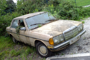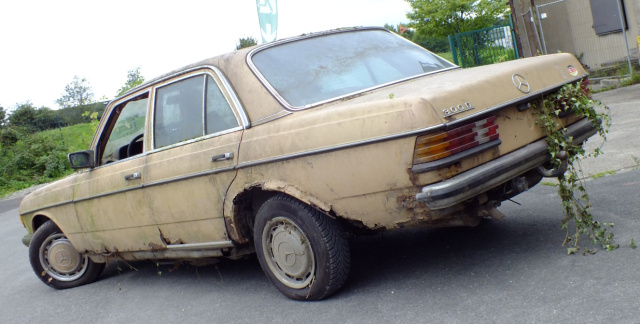 Der Fahrzeugeigner hatte einfach keine Zeit gefunden, sich um den Mercedes zu kümmern und es aber auch nicht übers Herz gebracht, sich von dem immer mehr vermodernden W123 zu trennen.