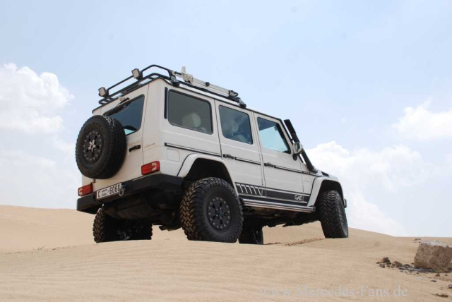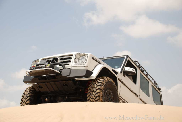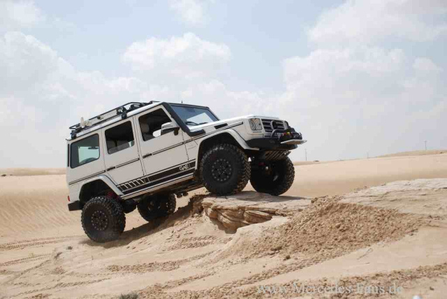 Die Mercedes-Benz G-Klasse hat sich im Laufe ihres Lebens recht weit von ihrem ursprünglichen zugedachten Zweck entfernt. Ursprünglich fürs Militär entwickelt, hat sich der Mercedes G zu einem Offroader mit Lifestyle-Nimbus, Sportfaktor und Freizeit-Fun-Garantie entwickelt. Als taffer Offroader ist der Kult-Geländewagen von Mercedes-Benz natürlich immer noch erste Wahl. Nur die Harten kommen in den Garten. Und nur die Härtesten schaffen es in die Wüste, um sich zum Beispiel durch die Sandberge der Golfstaaten zu wühlen. Der Auftrag heißt: Durchkommen: Mercedes G55 AMG übernehmen Sie!