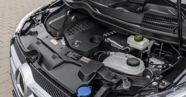 Dafür ist man kraftvoller als je zuvor unterwegs, denn der neue Motor bewegt den Transporter, der sich bestens als Familien- oder Shuttlefahrzeug einsetzen lässt, deutlich munterer und kraftvoller als bisher. „Mit der Modellpflege bekommt die V-Klasse den Vierzylinder-Diesel OM 654 von Mercedes. Dieser ist besonders effizient und sauber“, so Dr. Ulf Zillig, Leiter Entwicklung Mercedes Vans, „in der Leistungsstufe V 250 d liegt die Kraftstoffeinsparung beispielsweise bei über zehn Prozent im Vergleich zum Vorgänger. Gleichzeit ist die neue V-Klasse mit ihrer neuen Top-Motorisierung, dem V 300 d, noch dynamischer unterwegs. Das ist Benchmark im Segment.“ 2020 wird die V-Klasse auch als 204 PS starke Elektroversion auf den Markt kommt; dann allerdings mit Frontantrieb und ohne Allradoption. Die lange Zeit geplante Plug-In-Variante wurde gestrichen. Wer elektrisch fahren will, soll auf einen reinen Elektromotor setzen.