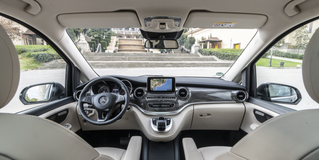 So dünn sich die Überarbeitungen außen präsentieren, so blass sieht es auch im Innern aus. Schwer verständlich, wieso der große Transporter-Bruder Mercedes Sprinter das neue Bediensystem MBUX herumfährt und in der deutlich edler positionierten V-Klasse das betagte Bediensystem mit kleinem Bildschirm und deutlich weniger Funktionen tun muss, während die Konkurrenz mit üppiger Vernetzung und neuen Bedienmöglichkeiten auf Kundenfang geht. Statt einer Touch-Funktion gibt es weiterhin den betagten Dreh-Drück-Steller mit dem Touchpad, der zwar schick aussieht, im Vergleich zur Konkurrenz jedoch nicht überzeugen kann.