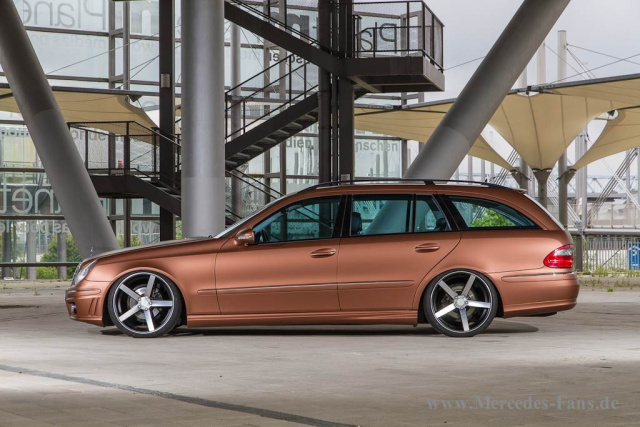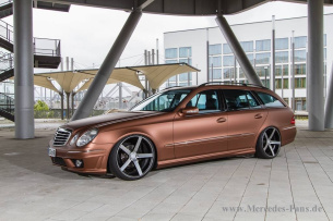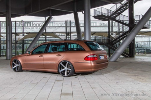 Die bereits vorhandene Airmatic war bei Yakups neuestem Coup beileibe kein Zufall, sondern ein sorgfältig geplantes Detail. Mittels Tieferlegungsmodul wurde der Kombi als erstes gehörig in die Knie gezwungen. Bis zu 80 Millimeter beträgt dabei das Maximum des Machbaren. Bis 70mm tiefer ist der Wagen noch problemlos fahrbar, so Nesat, uns ist immer wichtig dass die Autos die wir haben auch mit der extremen Optik noch uneingeschränkt nutzbar sind. Ein pures Showcar zu bauen, ist einfach nicht unser Ding.