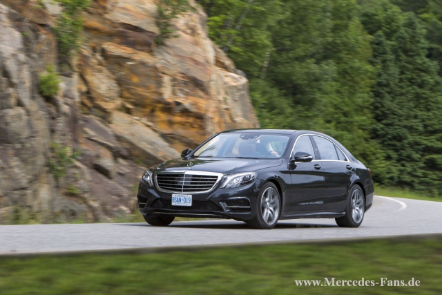 Kanada ausgerechnet Kanada! Was hat Kanada mit der S-Klasse gemeinsam, was macht Kanada aus? Brainstorming! Was fällt mir alles zu Kanada ein? Maple Leaf das Ahornblatt als Wappen bzw. Flaggensymbol, Ahornsirup, berittene Polizisten namens Mountys, Eishockey, zwei Landessprachen (engl. und französisch), Wälder und Natur, Schnee... - nichts passt wirklich! Bis auf die Größe! Kanada ist riesig, die S-Klasse auch! Vor allem in der Langversion passt der Mercedes besser in Kategorie Straßenkreuzer als in deutsche Beton-Fertiggaragen. Vielleicht deshalb Kanada, sicher aber auch weil Nordamerika zu den wichtigsten Märkten für die Limousine zählt.