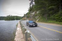 Los gehts durch den charmanten Großstadt-Dschungel der Millionen-Metropole Toronto nach Norden über langgezonene Highways in die Muskoka Region dem Malibu des Nordens. Die gut ausgebauten Straßen und Highways lassen die S-Klasse einfach nur gleiten und das auf allen Sitzen mehr als angenehm und bequem. Als Fahrer nutze ich den Abstandsregler Distronic Plus mit Lenk-Assistent und Stop-and-Go-Pilot, d.h. das System regelt nicht nur den Abstand zum Vordermann und warnt bei Verlassen der Fahrspur sondern hält das Fahrzeug selbstständig in der Spur vorausgesetzt, der Fahrer hat eine Hand am Lenkrad das lockere Mittippen zur Musik aus der exzellenten Musik aus der optionalen Burmester-Anlage reicht übrigens auch schon...