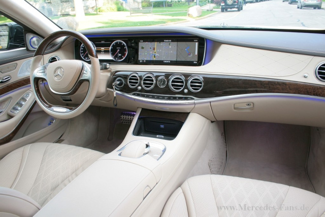 Langeweile kommt da nicht auf es gibt soviel neues zu entdecken in der neuen S-Klasse. Das neue Cockpit, das Sound-System, das Air-Balance-System, das Comand-System oder die vielseitige Massage-Funktion auf allen Sitzplätzen. Die Finger muss ich trotzdem am Lenkrad lassen, nach 10 Sekunden fordert mich sonst das System zunächst optisch, dann akustisch auf, das Steuer zu übernehmen!