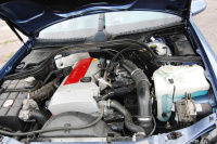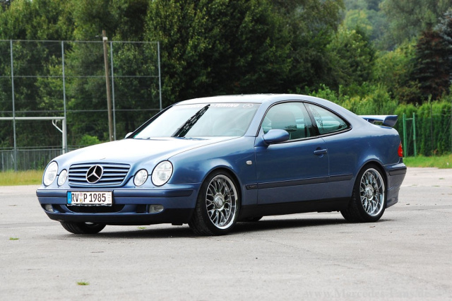 In neun Jahren hatte der Tacho gerade mal 69.000 Kilometer angesammelt. Der originale Farbton Quarzblau Metallic hatte es Patrick angetan. Die weit unter dem statistischen Durchschnitt liegende Kilometerlaufleistung legten nahe, den bis dato genutzten C180 (W202) als guten Mercedes Gebrauchtwagen abzugeben und durch diesen schicken Zweitürer zu ersetzen. Der verbaute 2,3 Liter Motor ist mit der edlen Fünfgangautomatik sowohl zum stilvollen Cruisen als auch für die flottere Gangart geeignet. Und da es immer noch ein wenig besser geht, liess Patrick das Steuergerät umprogrammieren. Statt der werksseitigen 142 kW leistet der Vierzylinder nach einer Bits-und-Bytes Kur nun stattliche 162 Kilowatt.