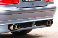 Der gestiegenen Leistung zollt eine Supersport-Vierrohr-Duplex Auspuffanlage Tribut, die das Plus an Abgasen durch insgesamt vier Endrohre ins Freie entlässt. Ein Heckansatz von Rieger Tuning umrahmt das Rohrwerk und legt die Hinteransicht optisch ein wenig tiefer.