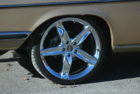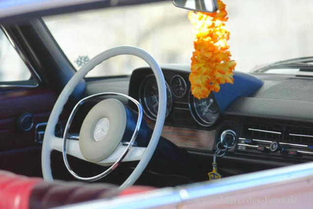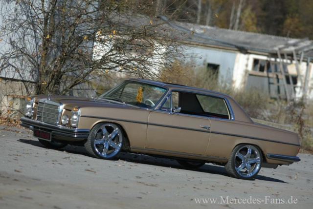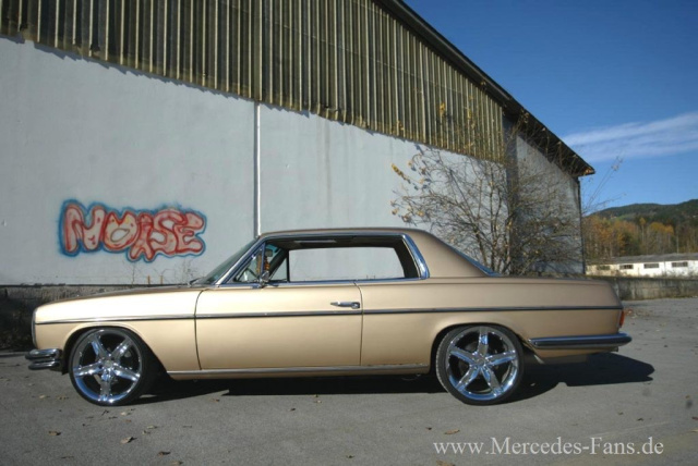 Vielen gefällt die Optik mit den großen Rädern. Wenn der Mercedes irgendwo steht, nähert sogleich der Eine oder Andere, um sich den W114 genauer anzusehen. Der Mercedes fällt eben auf. Dazu trägt sicherlich auch das goldene Finish bei. Es gab noch nirgends eine negative Kritik zum Fahrzeug. Von älteren Herrschaften höre ich mal ab und zu, dass die Räder nicht draufpassen würden, aber für den Mercedes selbst gibt es stets nur Lob."