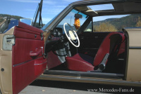 Des einen Freud, des anderen Leid. Einstmals sollte der Mercedes als attraktiver Werbeträger für eine Lackiererei Kunden anlocken. Das Kalkül ging auf", berichtet Christian, doch spielte der Mercedes seine Rolle als Publikumsmagnet viel zu gut. Nur wenige Tage, nachdem das Coupé seinen Dienst als Blickfang aufgenommen hatte, bat mich der Firmenchef, den Mercedes wieder abzuholen. Denn alle halbe Stunde kam jemand vorbei und wollte Informationen zu dem Mercedes haben oder aber ein Kaufangebot abgeben. Der Chef kam gar nicht mehr zum Arbeiten, weil dauernd einer auf der Matte stand und ihm Löcher in den Bauch fragte. Also bat er mich, das Fahrzeug wieder abzuholen. Seinerseits kaufte er wenig später einen W114 in in Blau mit weißen Leder."