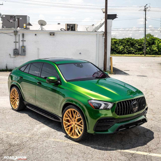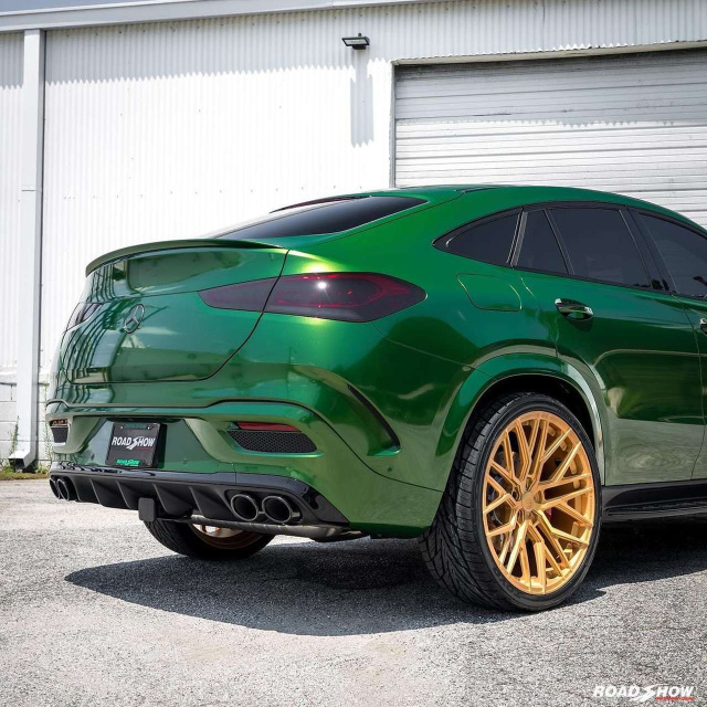 Das Styling des AMG GLE 63 S Coupés ist eigentlich eher rundlich - nach der Optimierung bzw. eines Umbaus bei US-Tuner Road Show ist der AMG SUV einer mit Ecken und Kanten, den der eine oder andere womöglich anstößig findet - falls man es denn so rein gar nicht extrem farbig mag. Bei diesem Exemplar ist die Neuinszenierung von Exterieur und Interieur in der Tat ziemlich bunt ausgefallen. Außen grün und goldig, innen puffig-rot - so kommt das GLE Coupé in Sicht. Wirkt‘s oder würgt‘s? - das ist hier die Frage.