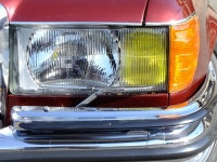 Karosserie: Frontschürze des Mercedes 450 SEL 6.9 AMG, schwarzer Grilleinsatz, Lackierung in Rot-Metallic
