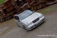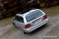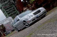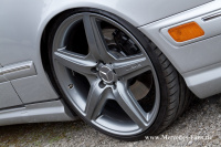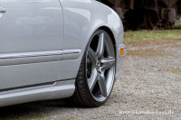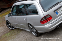 Die Firma Bilstein lieferte an der Vorderachse Gasdruckdämpfer des Typs "B8", welche Michael mit H&R Federn bestückte. Die Hinterachse behielt ihre serienmäßigen Niveauregulierungs-Dämpfer, wird aber ebenfalls dank H&R Federn tiefer gelegt. Auf etwa 60 bis 70 Millimeter beziffert Michael dabei die Tieferlegungsrate seines T-Modells. Das Räderwerk durfte den Modifikationen natürlich in Nichts nachstehen. AMG-Styling Räder in 20 Zoll, vorne 8,5 Zoll und hinten 9,5 Zoll breit, sollten sich fortan in den Radhäusern drehen. Die passenden Reifen dazu kommen von Hankook und messen 235/30, respektive 285/25 R20.
