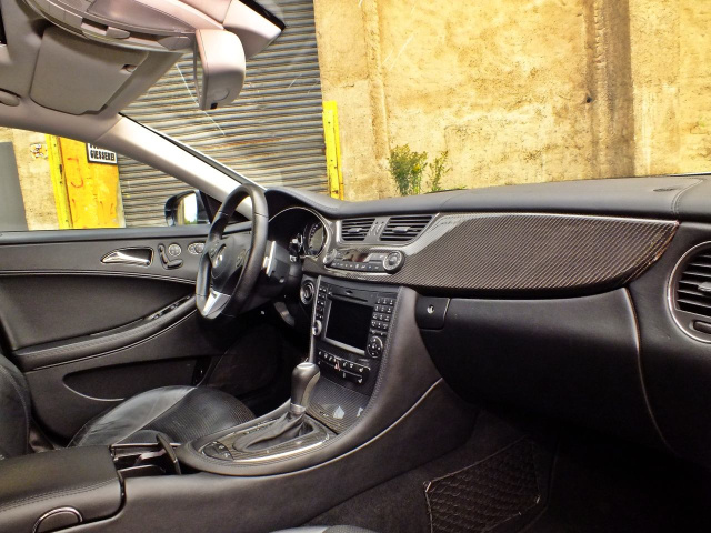 Carbon setzt auch im Innenraum des Mercedes-Benz CLS 63 AMG die Akzente für niveauvolle Sportlichkeit. Über der ganzen AMG-Innenraum-Herrlichkeit schwebt