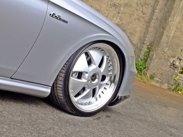 Highspeed-Fähigkeit und hochwertige Optik - das sind zweifellos zwei exzellente Eigenschaften, um ein Performance-Car besser dastehen zu lassen. Die Aufgabe, den Gesamteinduck einer durch und durch kraftvollen Linienführung abzurunden, kommt schlussendlich den MAE-Rädern zu. An der Vorderachse sind sie im Format 9,5 x 20 montiert. Hinten ist bei ihnen 12 x 20 das Maß der Dinge. Gummi gibt der Mercedes-Benz CLS63 AMG mit Dunlop-SP-Sport Maxx-Reifen - vorn in der Dimensionen 255/30 und hinten im vollfetten Format 315/25.