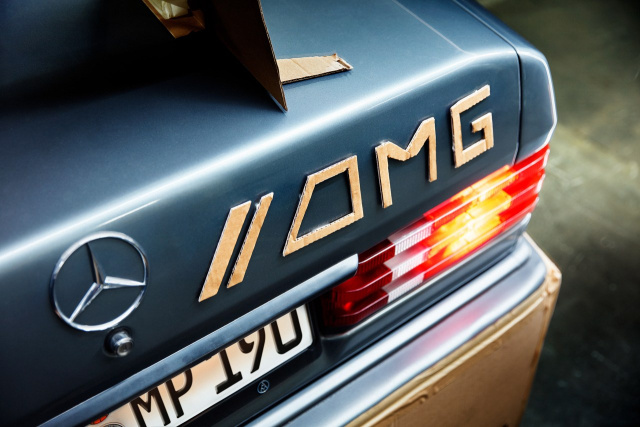 OMG statt AMG steht auf dem Heck. Oh My God: Dieses Signet ist gut gewählt, denn es ist ja eben dieser Gedanke, der so manchem Betrachter nicht nur beim ersten Anblick dieses W201, sondern bei jedem weiteren auch, durch den Kopf schießt. Warum? Weil die mit Paketband am Auto fixierten Anbauteile im XXL-Format samt und sonders aus Pappe gefertigt sind. Ist das also ein Projekt für die Tonne bzw. den Papierkorb. Nö! Das PIMP-MY-BENZ-Projekt sieht zwar so aus, ist aber von Idee und Umsetzung her überhaupt nicht von Pappe - auch wenn das Optik-Tuning aus dem W201 sozusagen einen Papiertiger gemacht hat (noch dazu einen japanischen).