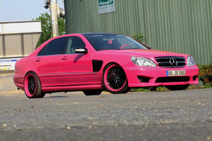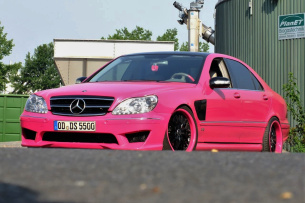 Wer Rosa liebt, der wird den S55, der in Telemagenta foliert ist, vermutlich mögen. Keine Frage: Jessicas W220 gehört nicht zu den Gondeln, die Trauer tragen, weil sie schwarz und düster sind. Zur Zeigefreudigkeit der jungen Frau gehört auch die Farbigkeit ihrer Autos, die als Lockangebot die Passanten zum Hingucken animiert. „Telemagenta“ steht auf der Farbskala - „rosa“ oder „pink“ lässt Jessica für die Bezeichnung des Kolorits aber auch gelten.