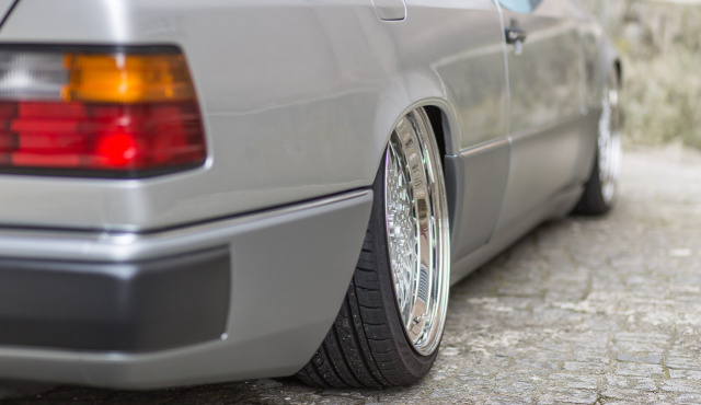 Regentropfen eines trüben Spätsommertages prasseln auf das brillantsilbermetallic lackierte Blech von Yakups 300 CE. Unverschämt tief liegt das Coupé auf der Straße. Yakup war lange auf der Suche nach der perfekten Basis für sein Retro Oldschool-Projekt, durchkämmte die endlosen Weiten des Internets und wurde dann fast vor der Haustür fündig. Baujahr 1992, erste Hand, 160.000 Kilometer, Vollausstattung. Wer beim Lesen dieser Eckdaten mit der Zunge schnalzt, würde wahrscheinlich ebenso schwach werden wie der junge Besitzer unserer Story. Noch dazu wenn der einzige Vorbesitzer ein Arzt war.