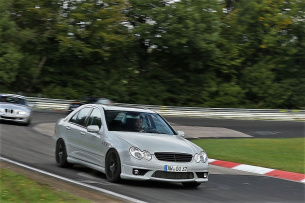 „Bad Boy“ taufte der 40-Jährige seine mutierte C-Klasse, die einstmals ein C32 AMG war, als sie im Jahr 2001 das Werk verließ. Der böse Junge kommt aber weder als Schmuddelkind noch im Lotter-Kleid eines x-beliebigen Rowdy-Sport-Automobils daher. Im Gegenteil: Sehr ansehnlich und kultiviert-sportlich ist das Erscheinungsbild des ehemals silbern nun aber in Porsche-Klassikgrau lackierten Mercedes-Benz-Sportwagens. Übertrieben böse ins Auge geht der Bad Boy nicht. Die optischen Signale indes deuten unmissverständlich an, dass ihm der Respekt des Fahrerlagers gebührt.
