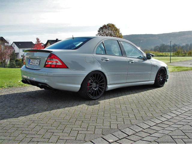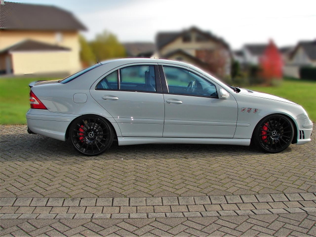 Leistungsmäßig ist der Bady Boy eindeutig einer, der ins Supersportwagensegment gehört. Und optisch? Der Look der C-Klasse ist auch nicht normal, sondern super markant gelungen. Sehr niveauvoll aber selbstbewusst sportlich tritt Pauls Bolide in Erscheinung - was nicht zuletzt an der Verwendung von reichlich Kohlenstoff liegt: Ein Echtcarbon-Laminat gab‘s für Wischer, Fensterrahmen, Grill, Wasserablauf und Dachabschlussleisten. Ferner kamen eine CLK63-AMG-Front, eine C55-AMG-Abrisskante, ein Carbon-Diffusor und W211-Mopf-Außenspiegel zum Einsatz.