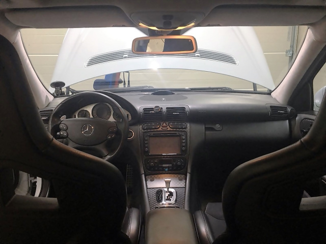 Pauls Bad Boy beeindruckt aber nicht nur mit PS und äußerlicher Performance. Auch das Interieur vermag den Betrachter für sich einzunehmen. Mit dem Kombiinstrument eines CLK55-AMG, CLK63-AMG Black-Series-Lenkrad, Recaro-Sportstar-CS-Sitzen (mit passenden Konsolen) sowie eine Belegung von Himmel und ABC-Säulen mit grauem Alcantara macht das Interieur der C-Klasse eindeutig mehr her. Darüber hinaus sind sämtliche Leisten und Blenden des Innenraums mit Echtcarbon laminiert worden.