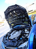 Karosserie: Folierung in Avus Blau von Drive and Style, Boca Carbon Frontlippe, Boca Carbon Seitenschweller, Boca Carbon Ground Diffusor, Boca Carbon Heckflügel (Black-Series-Style), Boca Carbon Motorhaube (Black-Series-Style), Boca Carbon Spiegelkappen