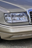 Seit jeher bezeugen Coupès formalen Stil und einen Sinn für Individualität. Letztere betont Roland Wiesenfarth durch ein dezentes Facelift. Front- und Heckschürze im Individual-Design, Chromkappen für die Außenspiegel und der in Wagenfarbe lackierte Flankenschutz verleihen dem in Rauchsilber-Metallic geduschten Mercedes ein stimmiges Erscheinungsbild.