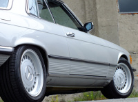 Karosserie: Komplett restaurierter Body, zahlreiche Bleche ersetzt, alle Hohlräume grundiert und lackiert und mit Mike-Sanders-fett konserviert, Unterboden mit Mike-Sanders-Fett konserviert, Heckspoiler vom Mercedes 450 SLC 5.0, rechter Außenspiegel nachgerüstet, Lackierung in Original Astralsilber-Metallic