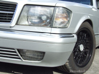 Im optischen Vergleich mit der Limousine wartet der Mercedes SEC darüber hinaus mit einer merklich veränderten Visitenkarte auf. Seine Frontansicht definieren schmaler konturierte Scheinwerfer. Der stilistische Kniff schafft Platz für einen verbreiterten Grill nebst eindrucksvollem Mercedes-Stern, der den sportlichen Anspruch des C126 nachhaltig betont. Ein weiteres Coupé-Merkmal an der Front sind die in den Frontstoßfänger plazierten Nebelscheinwerfer.