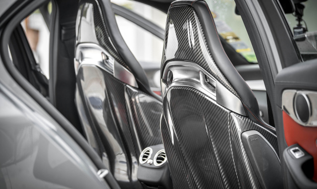 Die C-Klasse ist rundherum mit der edlen Kohlefaser bepflastert. Als Resultat präsentiert sich der C63 als edel verfeinerter Sportwagen.