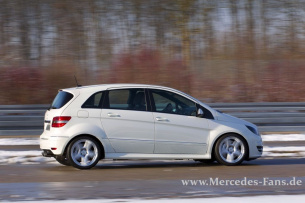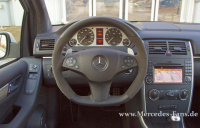 Dem stilvollen Outfit folgt passgenau ein elegant-sportives Interieur. Unterstützung gab es von der Ausbildungswerkstatt in Sindelfingen. Die dortigen Azubis steuerten Alcantara-Verkleidungen der A-, B- und C Säulen bei sowie einen ebenfalls mit dem noblen Material bezogenen Dachhimmel bei. Bei der Sitzanlage in einer Leder-Alcantara-Kombination halfen die auf dem Werksgelände angesiedelten Spezialisten des Lieferanten Johnson Controls. Die größte Plaudertasche in dem dezent-cleveren Gesamtszenario ist der Tacho! Und der kann nun wirklich nichts dafür. Schließlich muss er ja dem Fahrer zeigen, was geht. Vorsorglich haben sich die Verantwortlichen da mal für die 300 km/h entscheiden. Klar, das ist natürlich auch ein bisschen plakativ, aber mit 388 PS und nur 180 kg Mehrgewicht gegenüber der normalen B-Klasse , dürfte das B55 getaufte B-Klasse Einzelstück schon zu den flotteren im Lande zählen.