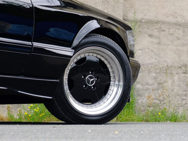 Die AMG-Anbauteile am C126 lassen das S-Klasse-Coupé mächtig in die Breite gehen. Die dicken Backen sollen aber nicht nur eine fette Dosis Sportlichkeit signalisieren, sie betonen auch ein aggressives Auftreten, das heute noch prima und sofort wirkt. Bei Ingos 500 SEC AMG sind die voluminösen Radhäuser mit AMG-Felgen der Dimension 9,5 x 17 und 11 x 17 sowie dicken Socken im Format 255/45 ZR17 und 285/40 ZR17 gefüllt.