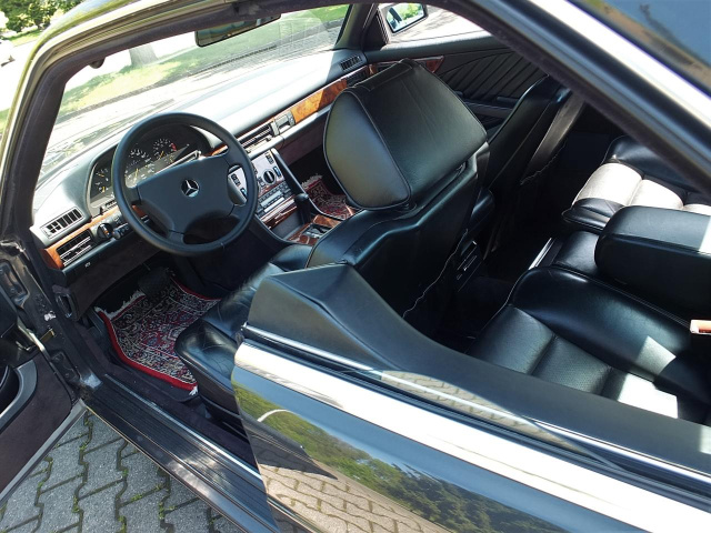 Innenraum: W140 Lenkrad mit Leder bezogen, handgeknüpfter Perserteppich im Fußraum, schwarze Softlederausstattung