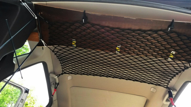 „Um bequem im Mercedes A140 nächtigen zu können, wurde ein Standardmatraze auf Mercedes-A-Klasse-Maß gebracht. Die weiche Unterlage ist zusammenklappbar und so problemlos im Fahrzeug zu verstauen. Des Weiteren finden sich im A-Klasse Camper ein Sonnensegel, ein Gaskocher, sowie ein Wasserkanister mit Handdusche sowie eine eingebaute Kühlbox und Gepäcknetze unter dem Dachhimmel an Bord. Das Sonnensegel wird an der Oberkante der Hecköffnung befestigt und über ein Stangen- und Seilsystem gespannt. Wie auf den Bildern zu sehen, müssen dabei die Hinterräder auf dem Spannsystem abgestellt werden, um die Spannung herzustellen. “