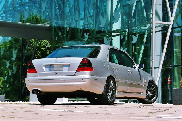 Dasselbe sportliche Understatement, welches auch ein C43 kennzeichnet, strahlt auch Martins C 200 aus. Möglich machen es eine Radlaufverbreiterung von 20 mm/ 5 mm vo/hi sowie die Nachrüstung eines originalen C43-Optikpakets und einer AMG-Abgasanlage ab Kat.