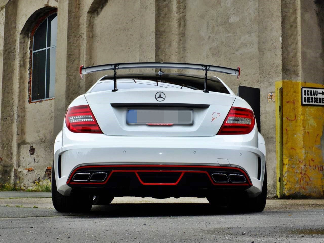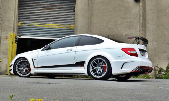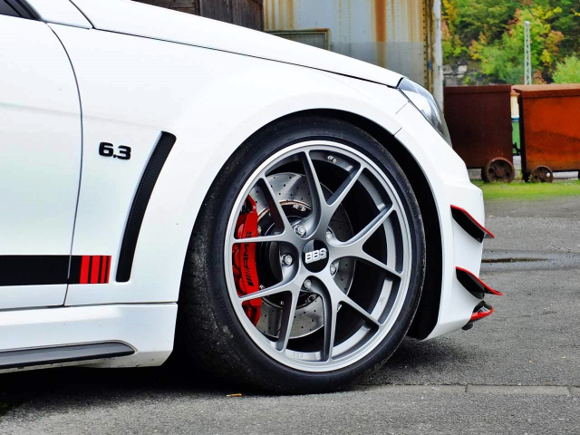 Breit, tief, bullig und schon im Stand zum Sprung bereit – so steht das C 63 AMG Coupé da. Egal, aus welchem Blickwinkel der Betrachter auf den AMG der Baureihe C204 blickt – hier schaut alles nach Motorsport aus. Die Anpassung des Designkleides wurde übrigens von Inden Design vorgenommen.