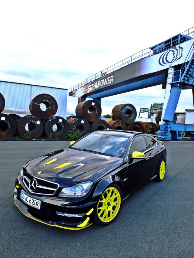Motor: V8, Hubraum: 6.208 ccm, Vmax-Aufhebung, Motorsteuergerät neu programmiert, Ansaugwege modifiziert, Heavy-Duty-Nockenwellen, Black-Series-Ölkühler, größerer Wasserkühler, Luftführung zur Motorkühlung an Front und Unterboden modifiziert, zusätzlicher Getriebekühler, Hinterradübersetzung auf Black-Series-Niveau modifiziert , Hinterachsen-Setup zum Driften und Rennstreckeneinsatz optimiert, Eigenbau-Abgasanlage mit Fächerkrümmer, X-Pipe, Klappensteuerung und 200-Zellen-Kats, Leistungssteigerung auf 623 PS, 332-kmh-Höchstgeschwindigkeit, Beschleunigung von 0-100 km/h in 3,9 Sekunden
