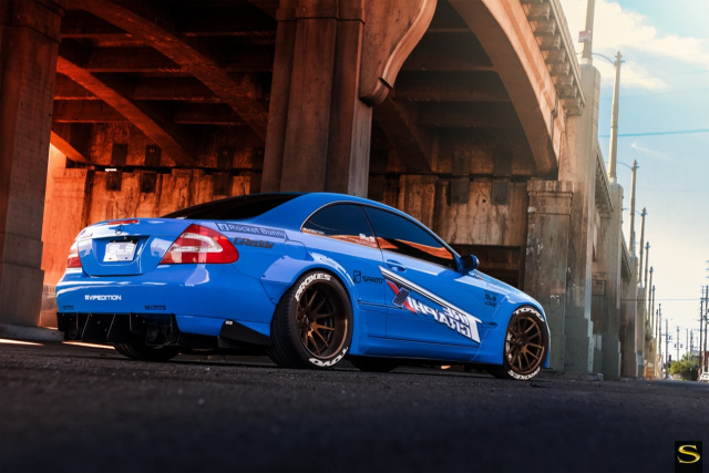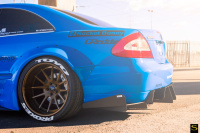 Der rassig rasante Look steht dem CLK jedenfalls ausgezeichnet. So muss und darf Tourenwagendesign ohne Kompromisse am Mercedes-Benz CLK ausschauen - auch wenn es ein blauer Lack vom Porsche GT3 RS ist, welcher dem Rocket-Bunny-Benz einen besonderen farbigen Akzent verleiht.