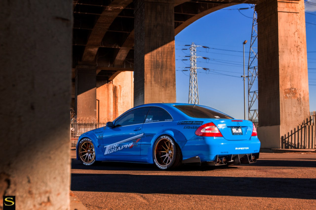 Gummi gibt der Renner mit Toyo Proxes Pneus der Dimension 265/30 vorn und 295/30 hinten. Jetzt mal Hand aufs Herz - und diese Aufforderung ist auch an diejenigen gerichtet, welche für sich einen dezenteren Weg der Autoveredleung gewählt haben: Der Rocket-Bunny-Benz hat doch was, oder etwa nicht? Dieses Zubehör katapultiert den Mercedes-Benz CLK mit Leichtigkeit aus der No-Go-Ecke und macht ihn im Kreise heftig getunter Sterne zum Eycatcher. (Bilder: Savini Wheels)