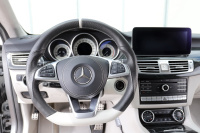 Innen sah ich aber schon noch Potenzial. Ich bin ein Fan von schönen Lenkrädern. Das AMG-Volant ist zwar nicht hässlich, war aber nicht exklusiv genug. Also ließ ich es neu beziehen und dabei die Form etwas schärfen. Schwarzes Lochleder und Glattleder in Kristallgrau harmonieren perfekt mit dem übrigen Interieur. Den billig aussehenden Plastik-Airbag tauschte ich gegen ein originales Leder-Exemplar aus den USA. Serienmäßig war der CLS mit dem großen Command-Online-System ausgestattet. Das System ist nicht schlecht, aber der Monitor mit dem riesigen schwarzen Rand störte mich doch massiv. Als Ersatz orderte ich ein 10,25 Zoll großes Android-System, dass anstelle des Displays montiert wurde. Damit kann man einerseits weiterhin das Command-System nutzen, hat aber andererseits ein natives Android mit all seinen Möglichkeiten und Apps sowie 4G an Bord. Ein tolles Spielzeug, in das man sich aber extrem einfummeln muss.