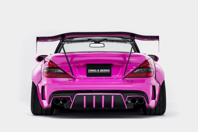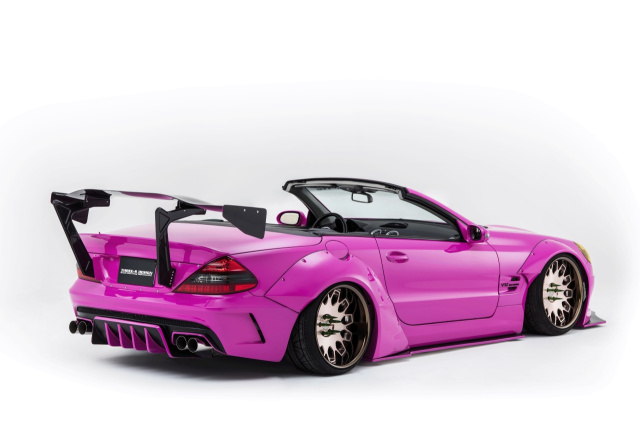 Man ist fast versucht, an der Karosserie des Mercedes-Benz SL nach dem Ventil zum Aufpumpen zu suchen. Derart aufgeblasen wirkt die Machart mittels Kit im Rocket-Bunny-Style. Einerseits. Andererseits: Gut gemacht ist dieses extreme Kit, für das übrigens der japanische Tuner Three-S Design verantwortlich zeichnet, schon. An der handwerklichen Kunst gibt es nichts zu meckern.