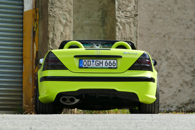 Grün ist die Hoffnung, heißt es. Aber auf das Prinzip Hoffnung hat sich Jessica Junge noch nie verlassen. „Das Leben ist kurz. Treibe es bunt", lautet das Lebensmotto der 38-Jährigen, welches ihr für alle Lebensbereich gilt. Als WIB (Woman in Benz) geht sie das Thema Fahrspaß sehr akiv und mit allen Mitteln an. Und das hat Folgen für ihre Mercedes-Fahrzeuge. Normal ist auch ihr SLK 230 Kompressor nicht. Der Roadster, den Jessica auf den Namen „Green Hornet“ (Grüne Hornisse) taufte, sticht dank Form und Farbe sofort ins Auge. Und weil der SLK auch ein Motortuning von VÄTH drin hat, ist das Plus an Giftigkeit, das die Optik ausstrahlt, durchaus auch real.