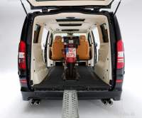 Innenraum: Accessoires von Hartmann-Tuning: speziell eingeledertes Sportlenkrad und Pedalauflagen; Dekorleisten in schwarzem Klavierlack, umfangreiche Lederausstattung (Kombination aus BMW-Nappaleder und Alcantara), Sonderteppich mit Lederstreifen in Sitzfarbe eingefasst), zusätzliche Schall- und Wäremisolierung für Seitenwände und Dach, sechs Einzelsitze, elektrische Schiebetüren, zwei Klimaanlagen, Rückfahrkamera