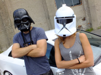 Anatoli Stavnitschuk und Freundin Laura sind bekennende Star Wars-Fans. Klar, dass bei diesem besonderen Faible für die furiose Weltraum-Saga nur ein schöner Stern in die Garage kommen durfte. Und selbstverständlich zeigt sich der mit Star Wars-Motiven verschönerte Mercedes CLK 270 CDI der Baureihe C209 nur von seiner guten Seite.