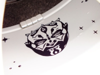 Kaum erworben, versah Anatoli sein Coupé mit einem pfiffigen Individual-Trimm. „Das mit Star Wars-Motiven garnierte Styling-Konzept entstand aus der Überlegung, ein passendes Thema für den Mercedes zu finden“, schildert Anatoli. „Da es bei den Star Wars-Filmen um Sterne und die gute bzw. dunkle Seite der Macht geht, kam ich auf die Idee, die Räder unterschiedlich zu gestalten.“