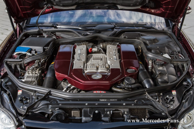 Motor: V8, Kompressor, 5439 cm³ Hubraum, 476 PS, V/max-Aufhebung, AMG-Auspuffanlage mit X-Pipe modifiziert