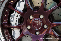 Basis für die individuellen Felgen sind RH-Felgensterne. Innen- und Außenbetten wurden speziell für dieses Fahrzeug zusammengestellt. Auf dem Papier bedeutet das: 12x20 Zoll an der Antriebsachse, bereift mit 305/25er Conti Sport Contact 5. Die Lenkachse wurde mit 10x20 breiten Alus bestückt. 255/30 lautet dort das Gardemaß. Der Begriff Walzen ist angesichts der Dimensionen wohl mehr als angebracht.