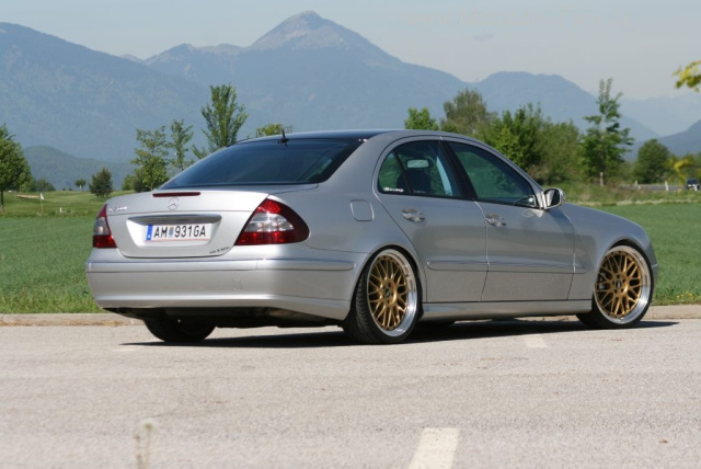 Edel und energetisch zugleich so mag Marcel Oberaigner (s)einen Mercedes am liebsten. Sein E500 der Baureihe W211 fährt mit gutem Beispiel für ein ebenso sportliches wie elegantes Styling voran. Und weil die Basis stimmt, war die Metamorphose der E-Klasse zum automobilen Edelmetall in Rekordzeit bewerkstelligt.
