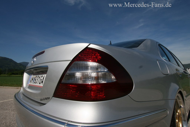 In der Tat bedarf ein Mercedes W211 nicht vieler Updates, um ihn zum ultimativen Eycatcher umzustylen. Verleiht ihm doch bereits seine markante Vieraugen-Front ein charakteristisches Gesicht in der häufig doch recht gleichförmigen Menge einheitlich geformter Durchschnittsautomobile.