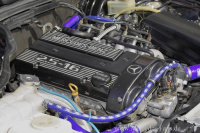 Den Vierventiler staffierte der begeisterte Schrauber komplett mit Samco-Schläuchen aus. Des weiteren wird das 2,5-Liter-Aggregat nun von einem elektrischen Lüfter gekühlt. Für die aktuelle Topleistung von 225 PS sorgen die nachgerüsteten scharfen Evo-2-Nockenwellen und eine durchsatzstarke Rennsport-Auspuffanlage von Atec (komplett Edelstahl mit 200-Zellen-Katalysatoren). Die Kräfte werden über ein Getrac-Sportgetriebe übersetzt. Und auch im Verzögerungsfalle zeigt sich der Mercedes mit der AMG-Bremsanlage eines Mercedes C36 (W202) allerbestens gewappnet.