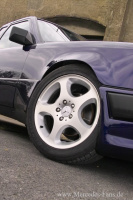 Das Fahrwerk erhielt eine komplette Überarbeitung. Im Zuge dieser Maßnahme tauschte Thomas Tenberg alle Streben und Lager aus. Eibach-Federn bringen den W124 auf ein sportives Niveau. Die Achsen sind mit den attraktiven 17-Zöllern des Mercedes-Benz W210 Avantgarde bestückt. Thomas Tenberg sattelt die Rundstücke mit 235/45er Niederquerschnittreifen von Dunlop (Sport Maxx).